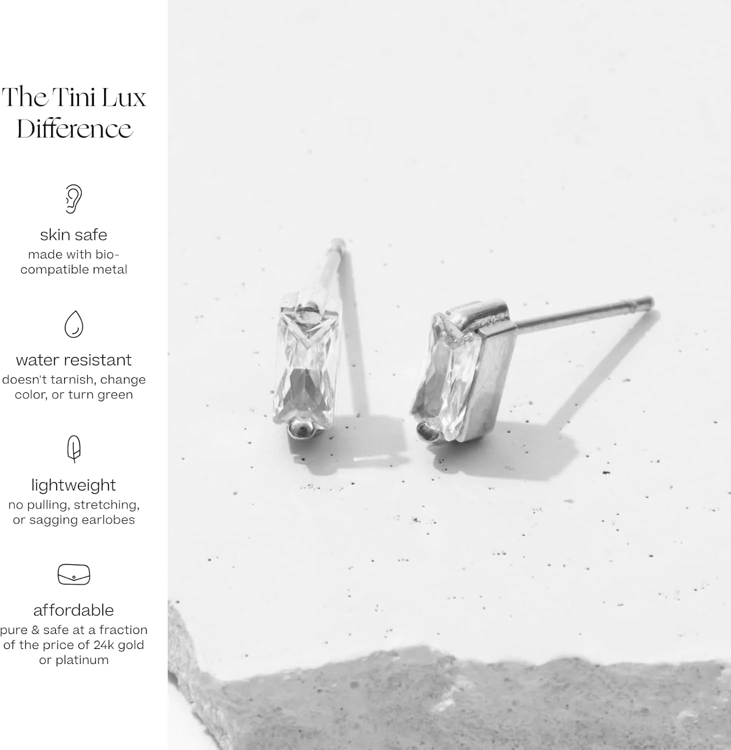 | Hypoallergenic Earrings | Titanium Bijou Stud Earrings | Small Silver Baguette Crystal Detail | Titanium Stud Earrings for Women | Earrings Studs, Sensitive Ears, Trendy Womens Earring Set