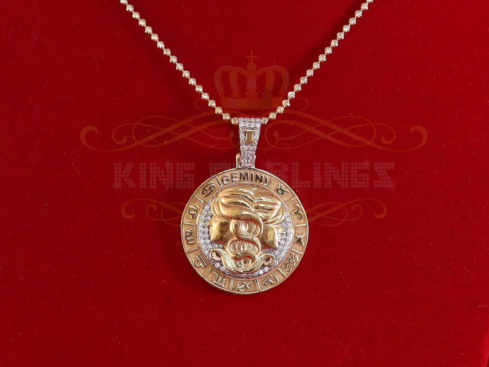 This new is a stylish unisex piece made of 925 sterling silver with a yellow metal color. It features a 2.23ct AAA cubic zircon April birthstone, giving it a good shiny appearance similar to a real diamond. The Zodiac sign 'GEMINI' pendant weighs 14.78 gm and is designed for both women and men, making it suitable for all genders. Please note that the chain is not included, and the bell size for the chain is 9X9. The Zodiac sign 'GEMINI' pendant comes in new condition with tags and original packaging, and the metal is rhodium plated and nickel-free for an enhanced appearance and reduced tarnishing. Detailed pictures are available for more information. If you have any further questions, please feel free to ask.
