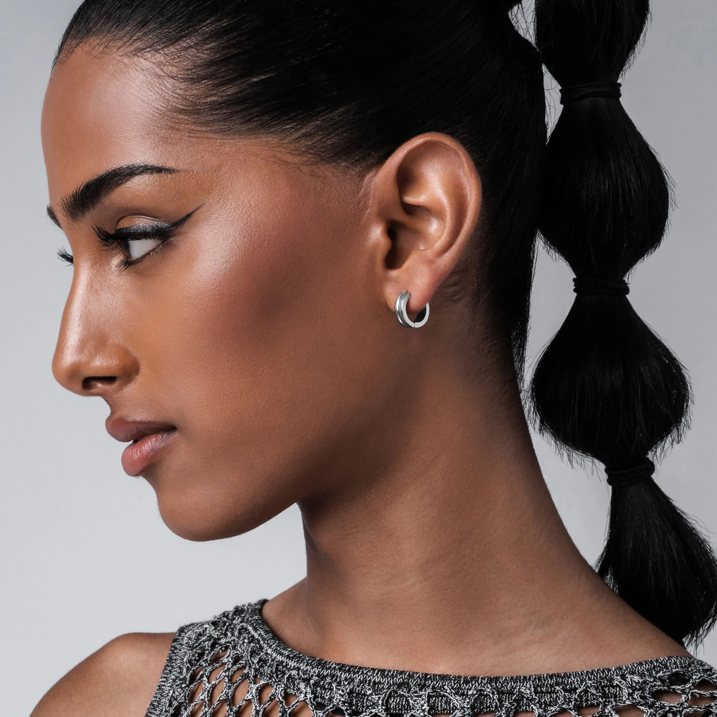 These bold huggie earrings are elevated with subtle linework and a hidden pin closure, making them the perfect everyday set.