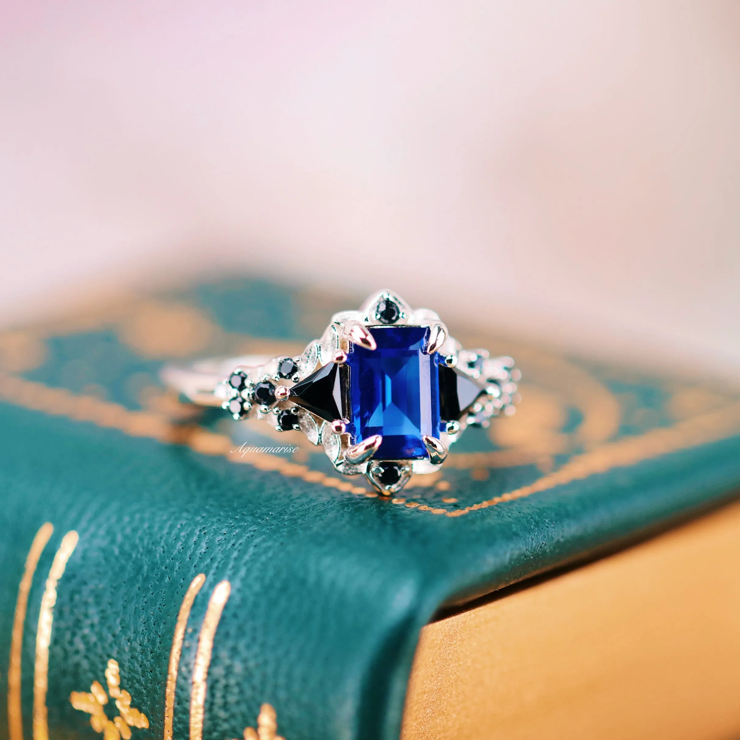 ►Celebrate your unique bond with the Blue Sapphire & Fire Opal Couples Ring Set, a symbol of enduring love and shared commitment. Crafted with exquisite detail, these matching wedding bands are designed to complement each other perfectly. The stunning blue sapphire, representing loyalty and sincerity, graces the bands, accompanied by fiery fire opal accents that add a touch of passion and intensity. Each band is adorned with black diamond embellishments, enhancing their allure and elegance.