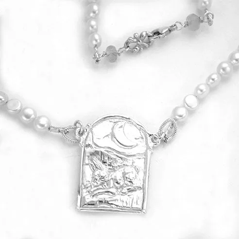 This fun Necklace Has a carving on both sides of the central pendant. Where the Bunny in the moon one day and The clock on another. Twice the necklace,all for one price.