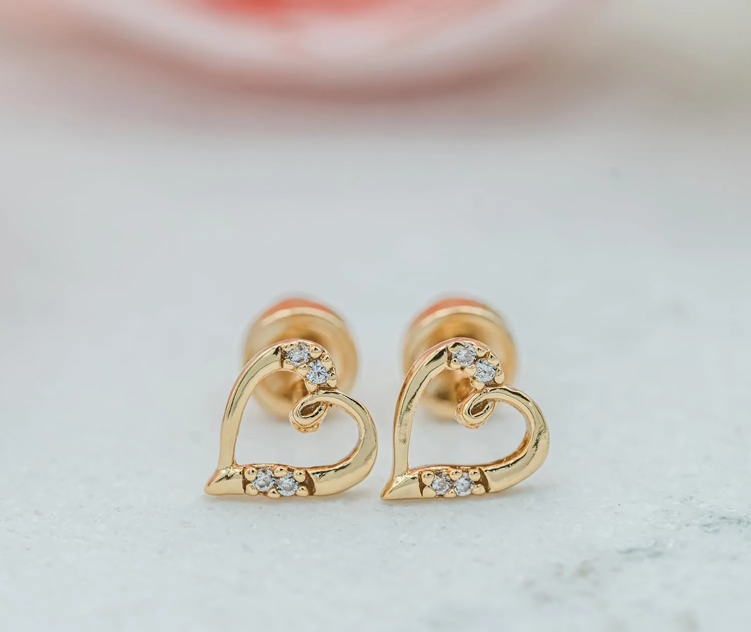 - PREMIUM QUALITY Earrings are designed using 14K gold plating over sterling silver and feature beautiful dainty heart with tiny CZ accents. They are hypoallergenic and nickel free so they will not irritate sensitive ears. These make a timeless keepsake she will treasure forever. Cross Earrings measures (6.5mm).