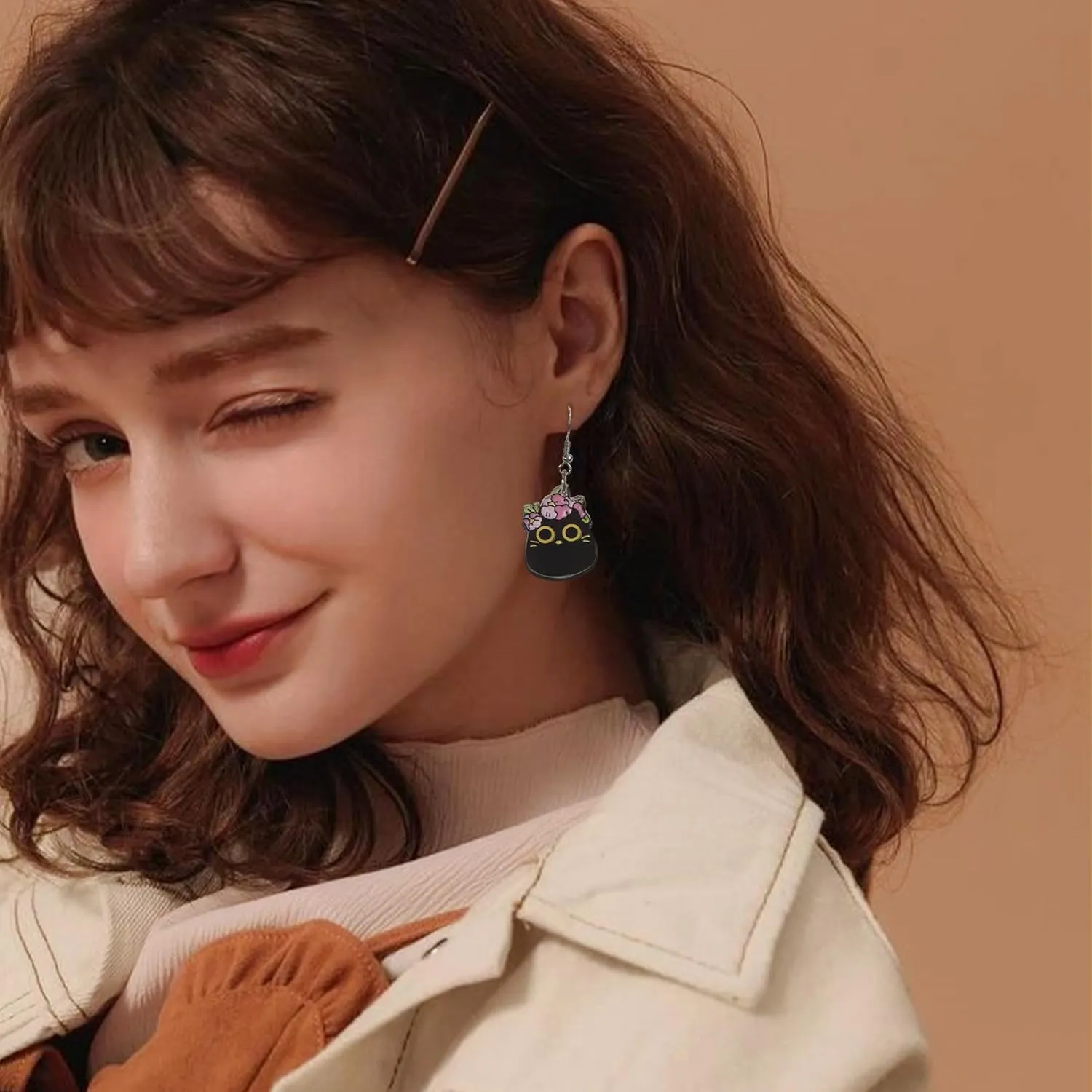 - UNIQUE DESIGN This black cat earring set is drawn in an anime style, showing the six adorable looks of a black cat in a humorous, fun and cute style!