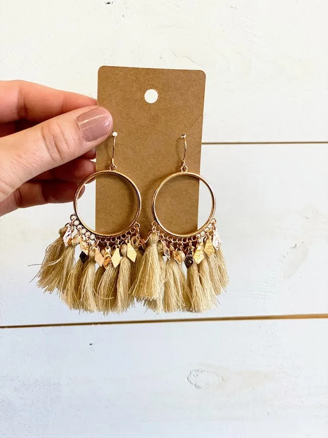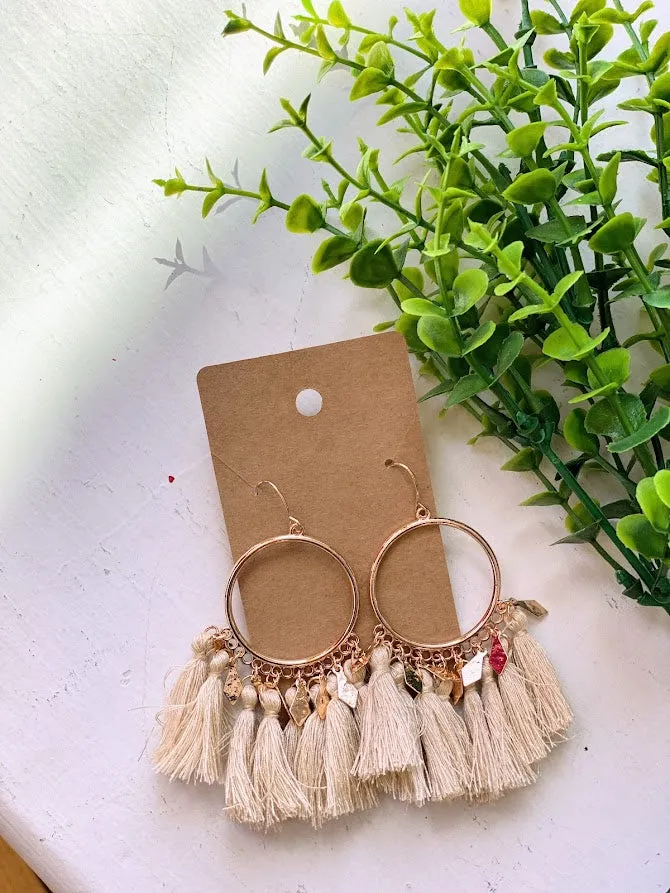 Add a touch of class to any look with these beautiful Cream Tassel Earrings! With a timeless cream tassel, a golden dangle and an elegant silhouette, these earrings are the perfect way to elevate any outfit. So upgrade your style with some subtle flair and add a pair of these to your collection!