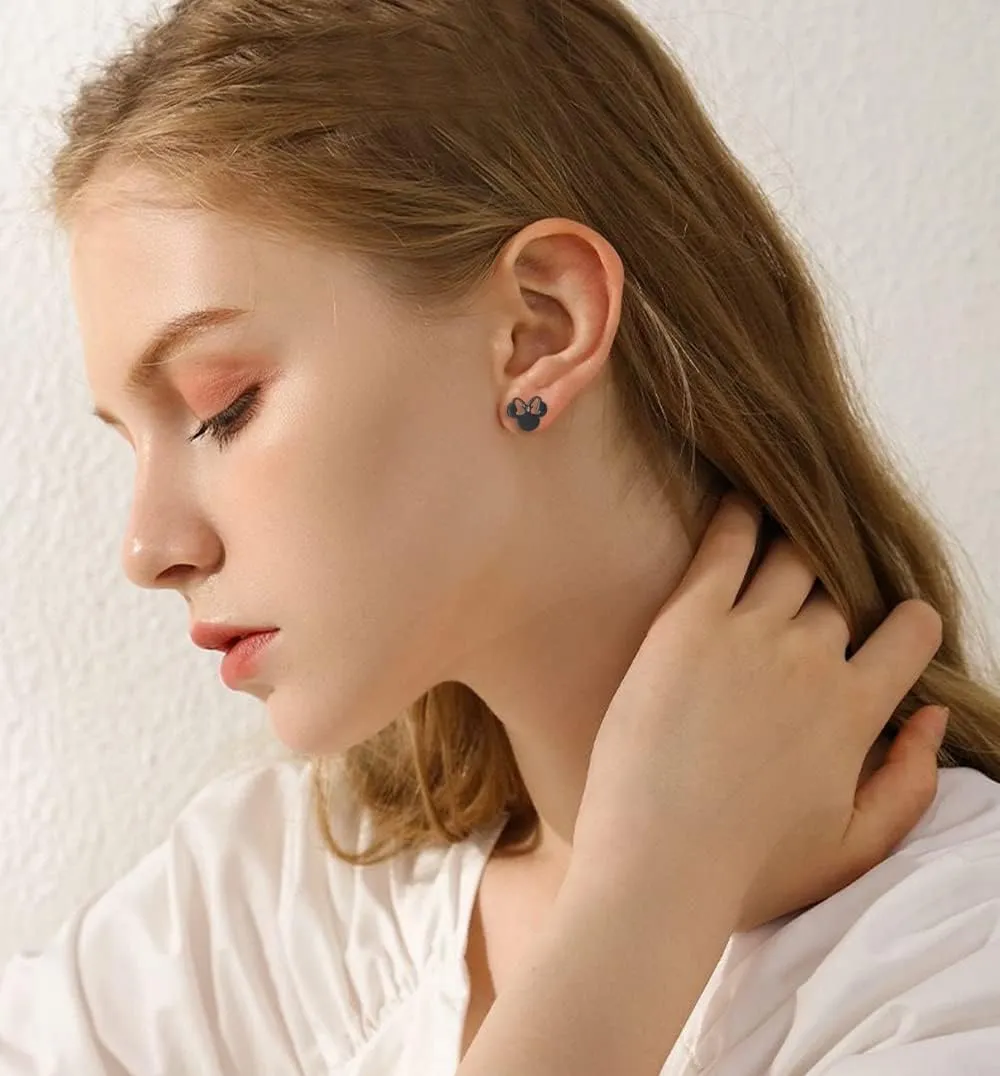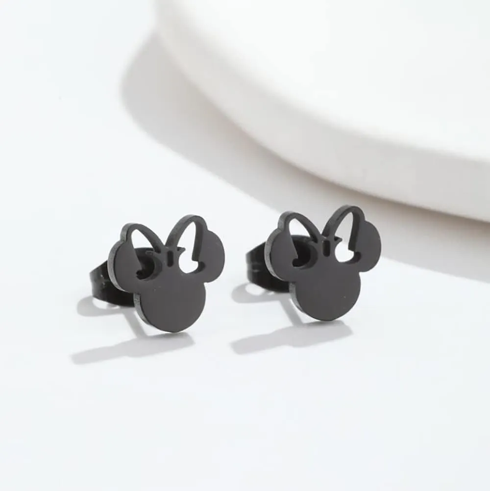 Cute Mouse Stainless Steel Stud Earrings Hollow Bow Knot Tiny Studs Earring Lovely Jewelry Gifts for Women Teen Girls Bff Birthday
