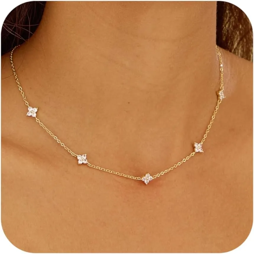 - Flower Necklace for Women: Brighten up any outfit with this sparkling Cubic Zirconia Station Necklace. Each shimmering stone adds a touch of elegance, making it perfect for both everyday wear and special occasions. Wear it alone for an elegant look, or layer it to create your own unique style.