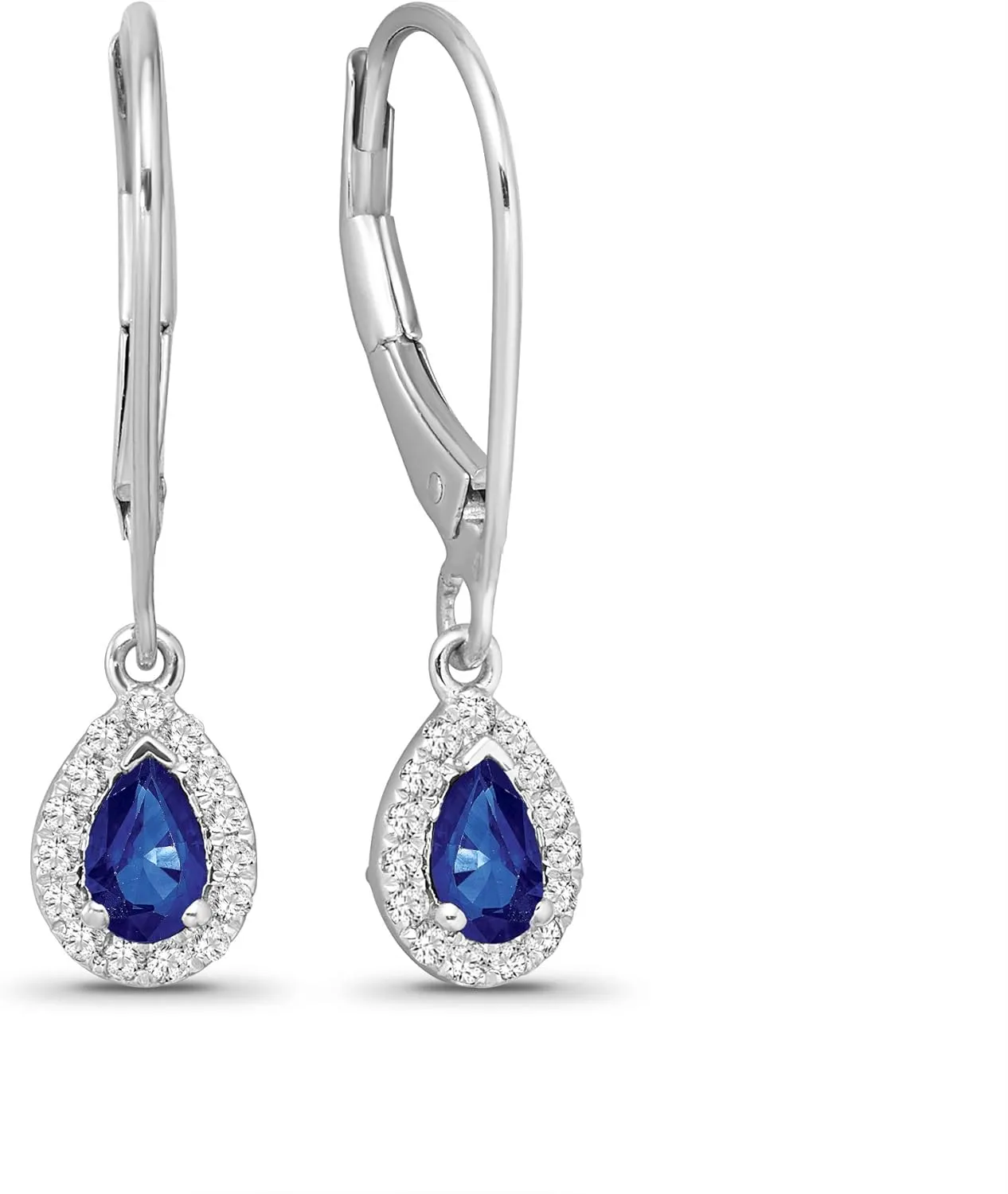 - Product Details: 10k White Gold Diamond and Blue Sapphire Dangle Earrings (1/6 cttw, I-J Color, I2-I3 Clarity)