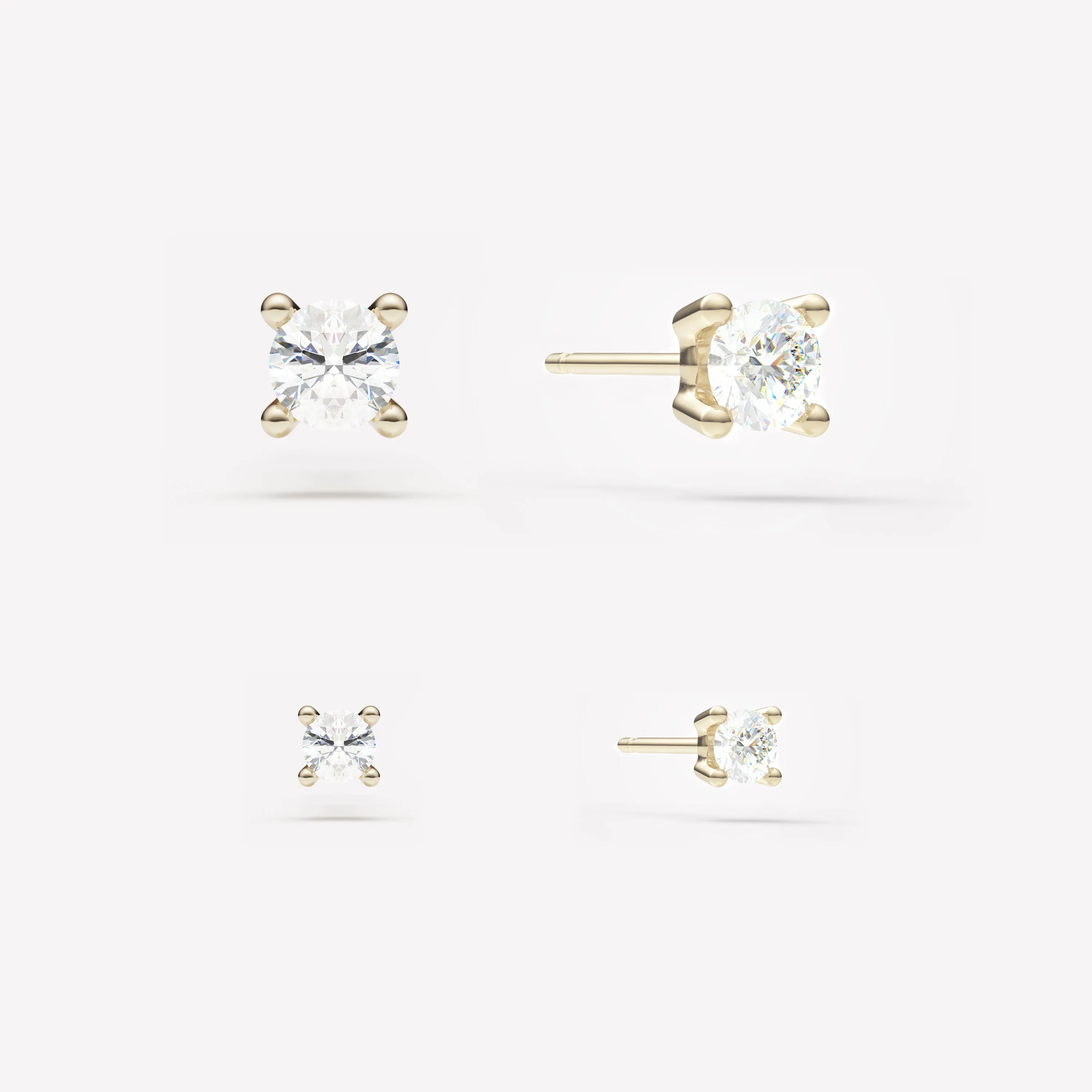 18k gold studs with prong-set white diamonds. The classic staple for any earring stack, crafted in 18k gold with comfort backs.