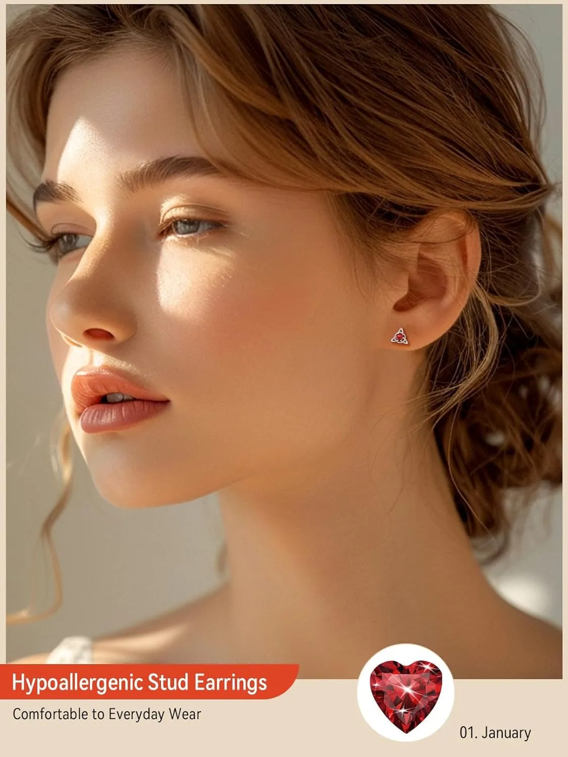 FaithHeart Sterling Silver Earrings for Women, Heart/Square/Celtic Knot Birthstone Stud Earrings Dainty Cubic Zirconia Hypoallergenic Jewelry with Gift Box