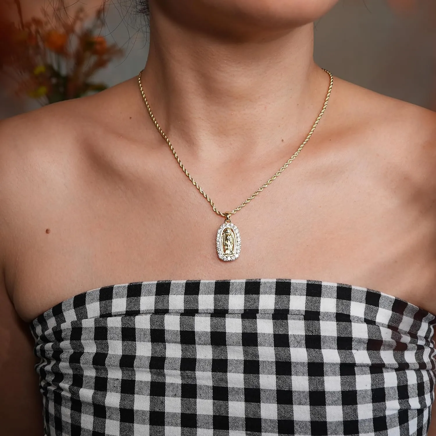 The representation of Our Lady of Guadalupe evokes rich cultural traditions that enhance the necklace's allure through its historical and spiritual significance. It is not just jewelry but a piece that tells a story.