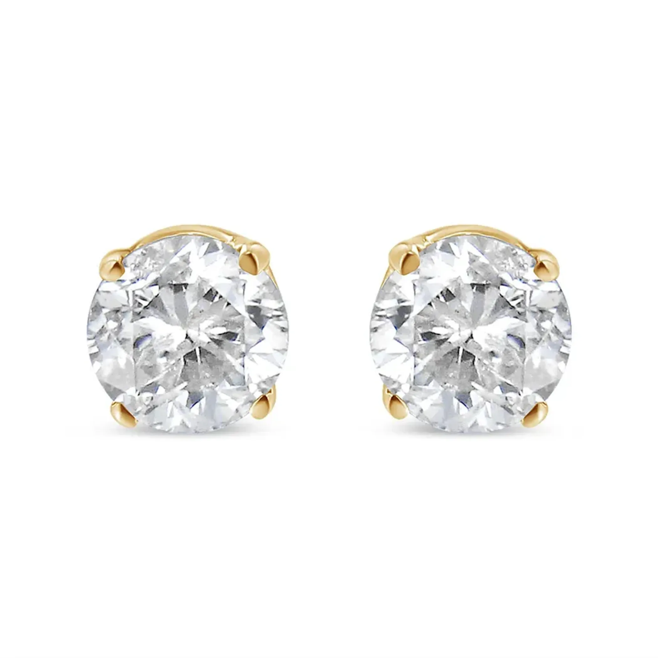 Two gorgeous white diamonds sit in a prong setting on these sparkling stud earrings. Crafted in your choice of yellow or white sterling silver, these diamond stud earrings feature a high polish finish. These stunning silver earrings feature 0.37 carats of diamonds, and the prong settings are sure to keep your precious diamonds in place. These stud style earrings are subtle enough for casual affairs but sparkle in formal settings as well. Coordinate these earrings with your favorite diamond necklace or other diamond jewelry to create a complete elegant ensemble. Comes with a 3rd party laboratory certificate."