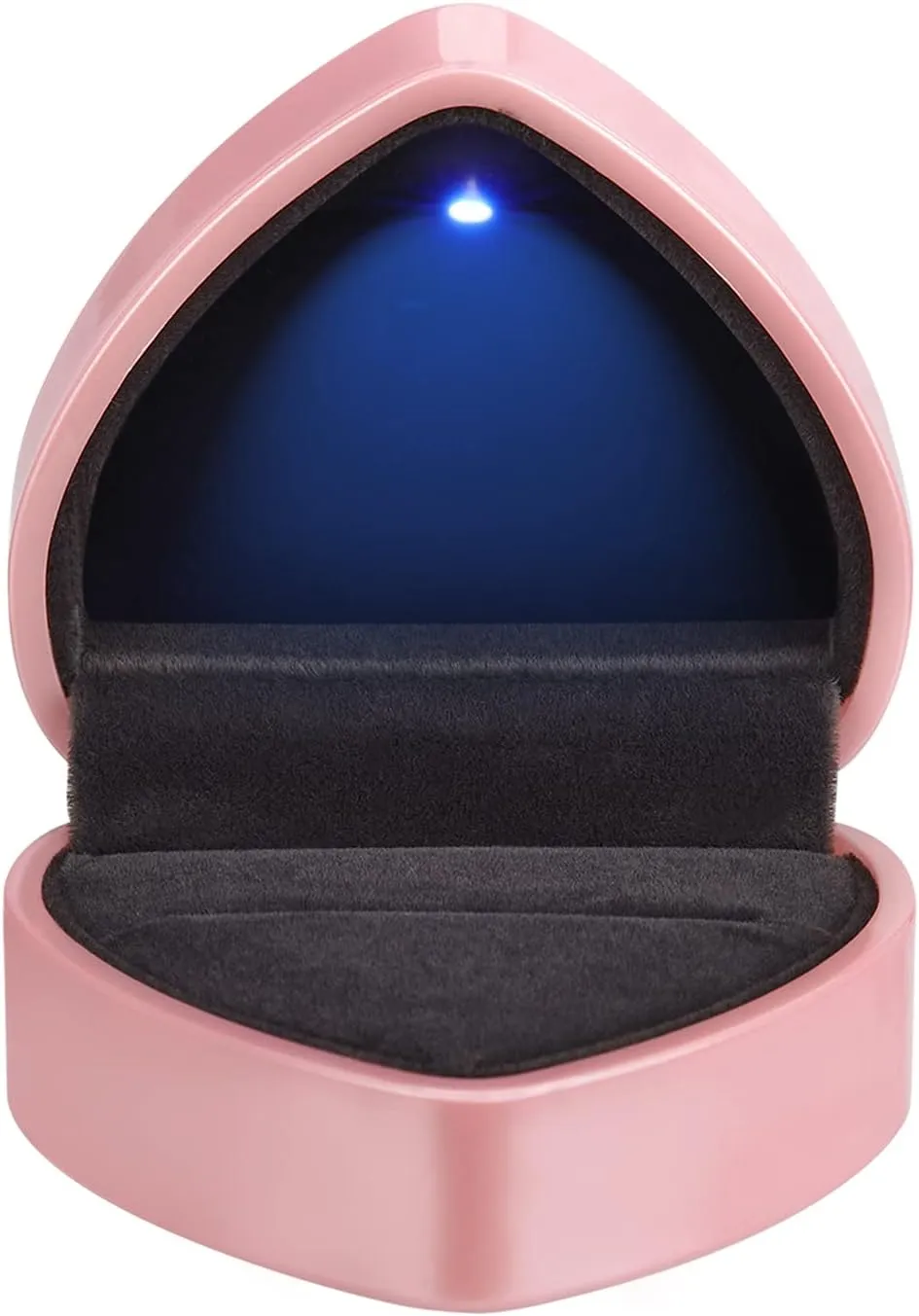 Heart Shaped Ring Gift Box with LED Light, Velvet Earrings Jewelry Case with Light, Jewellry Display Box for Wedding, Engagement, Proposal, Birthday and Anniversary (Pink)