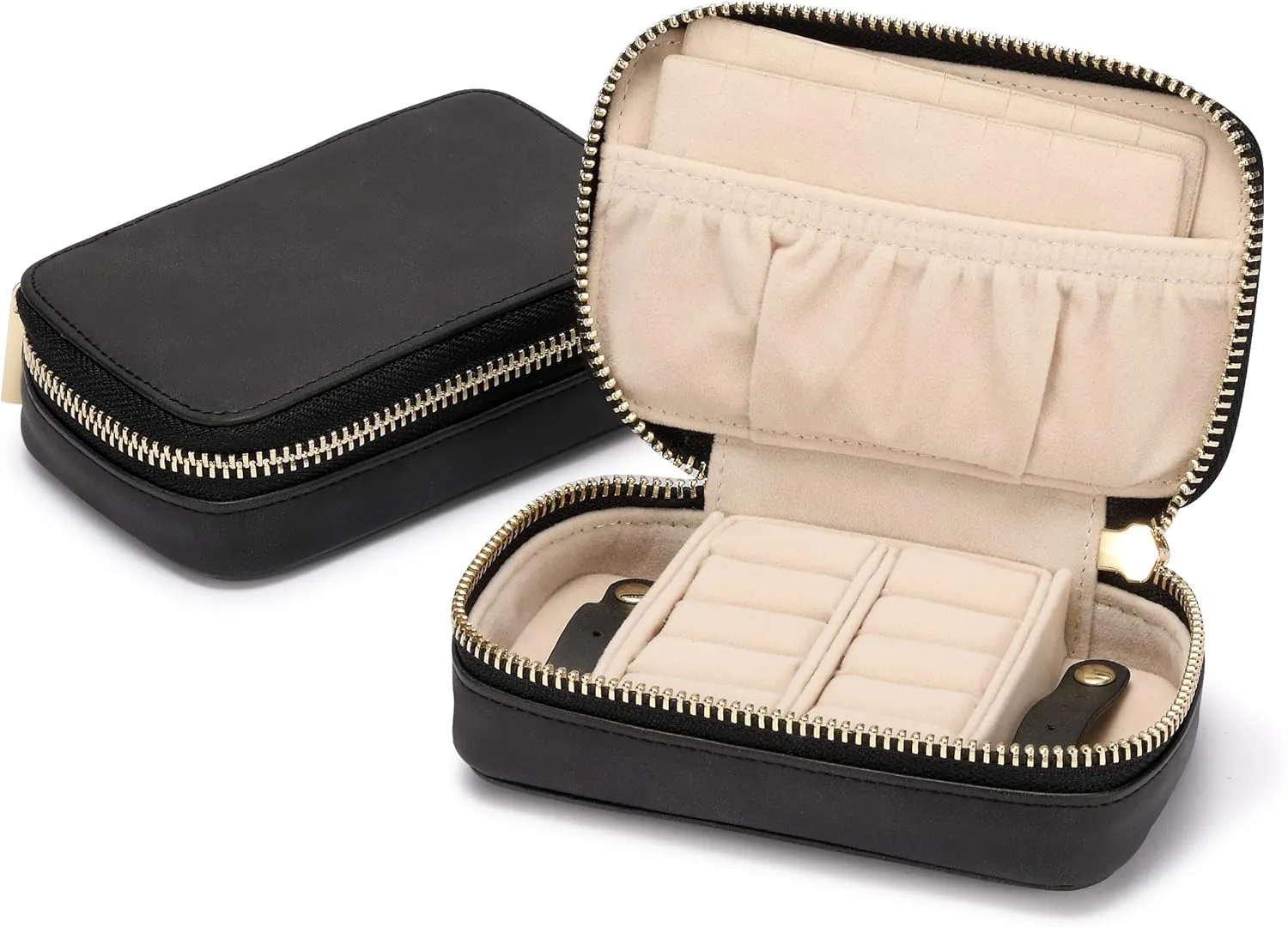 • Secure Storage: Anti-tarnish suede lining and a gold-tone zipper protect fine jewelry from tangling, scratching, or tarnishing; dedicated compartments for rings, earrings, and necklaces