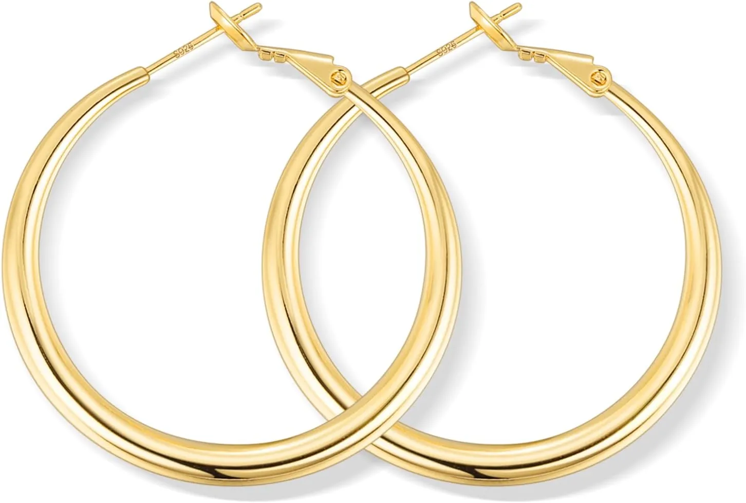 - Lightweight and Comfortable: Gold hoop earrings for women use 925 sterling silver posts to make them safe to wear. Our 14k gold hoop earrings are made to be lightweight and comfortable to wear all day without causing any discomfort or pressure in the ears. The clasps on the hoop earrings are designed with a spring clip that is easy to open and close and won't fall off.