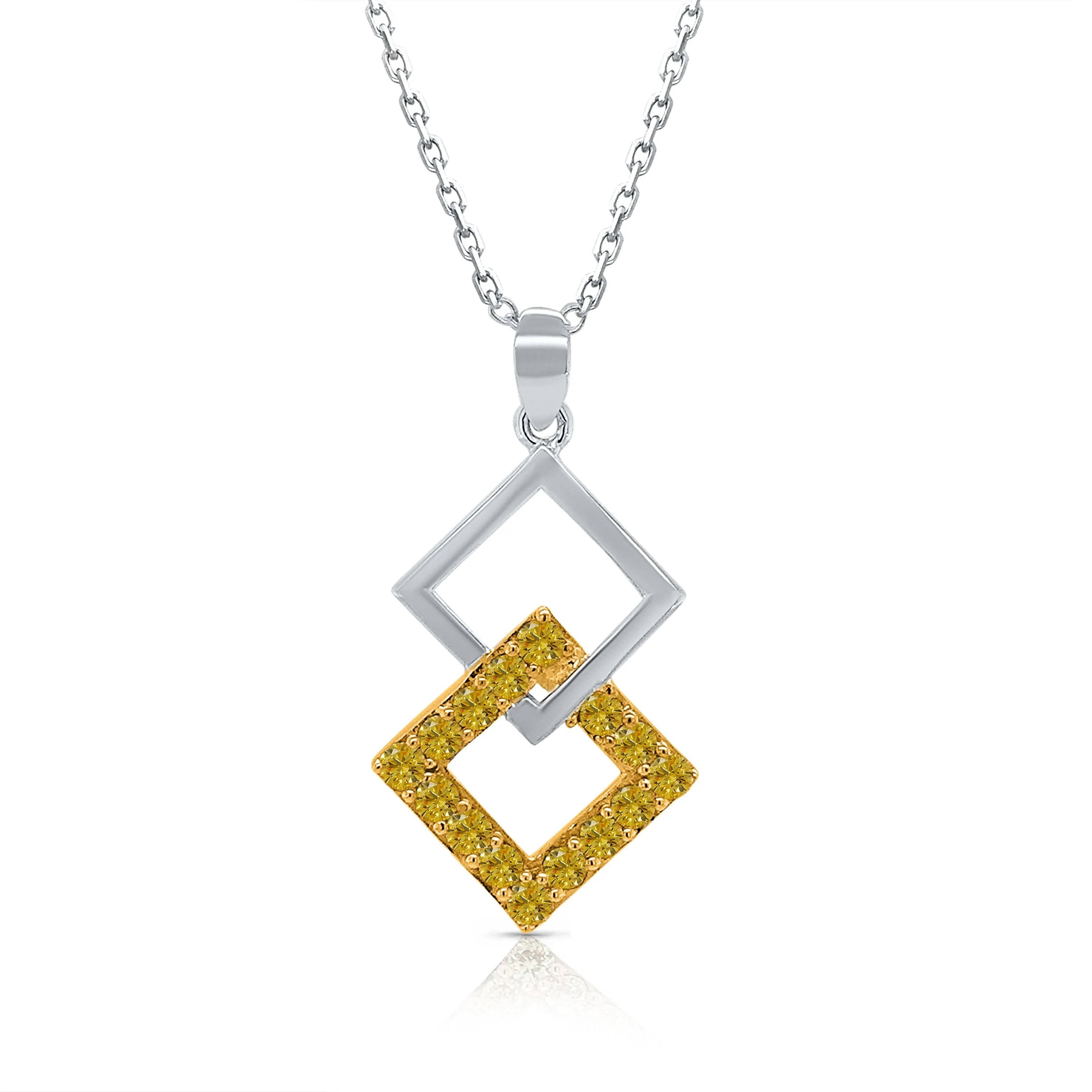 This pendant features 0.40 CTW of brilliant yellow and white diamonds on an 18" cable chain with a lobster lock.