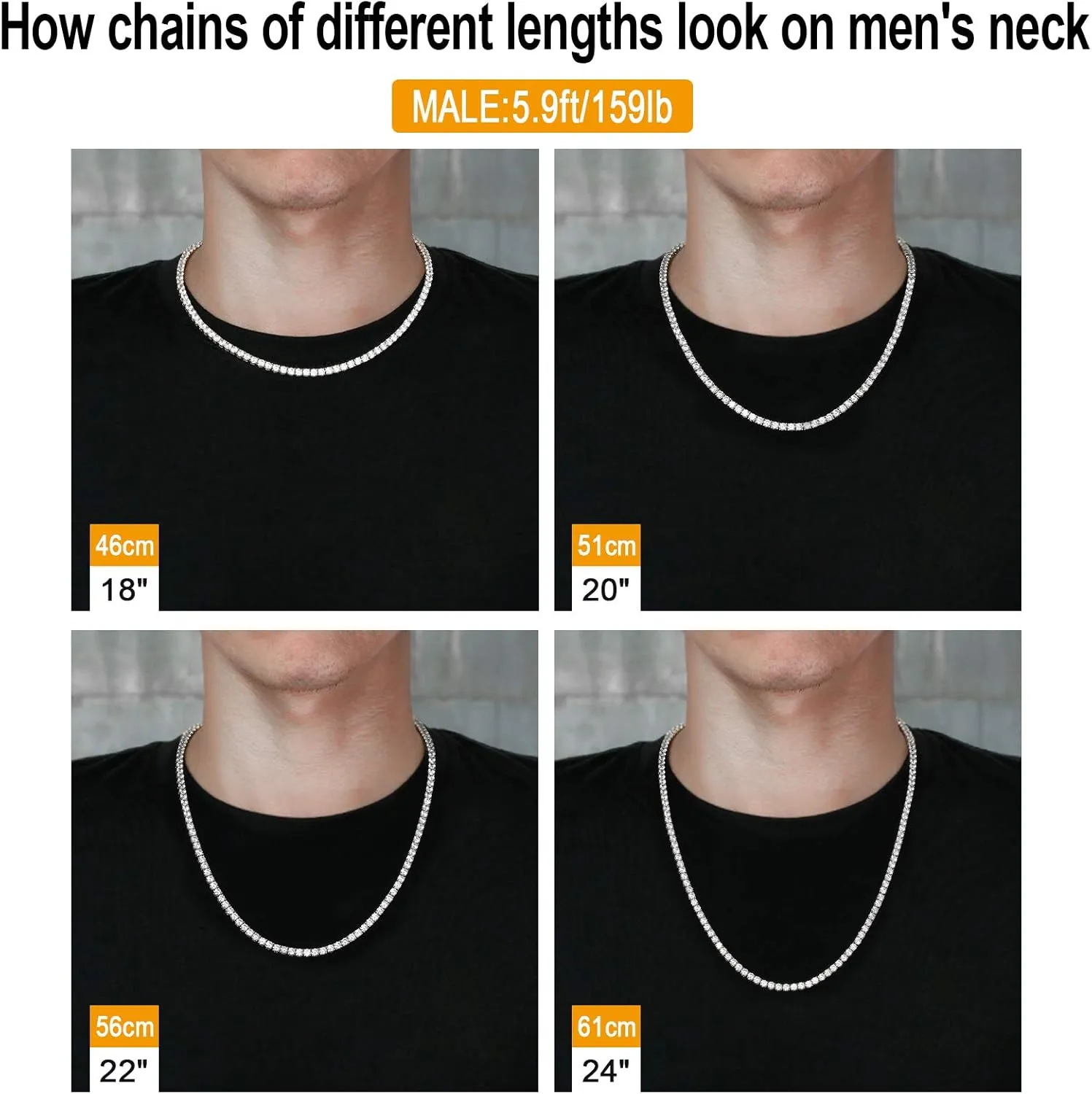 - SOLID AND FLEXIBLE: Test the clasp to make sure it closes securely and does not open easily. It should be strong and not easy to bend or break. It will allow you to wear your tennis chain necklace more often without fear that its parts will wear out quickly. Ranking top in this hip hop jewelry game