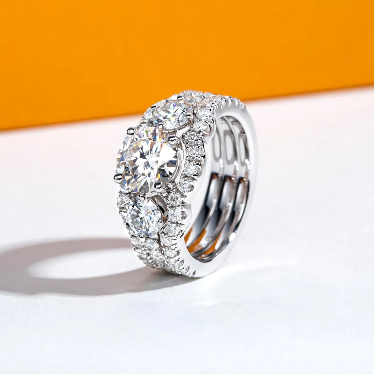 - Premium Moissanite Moissanite is gorgeous but very cost-effective. It is birefringent and has a fire color that is more than 2.5 times that of a luxury gemstone. Moissanite has a hardness of 9.25, second only to the luxury gemstone, and can be worn continuously and maintain its brilliance, clarity, and fire color characteristics. The round brilliant cut, D color, and VVS1 clarity make it shine more brightly and look like a real luxury gemstone at a fraction of the price.