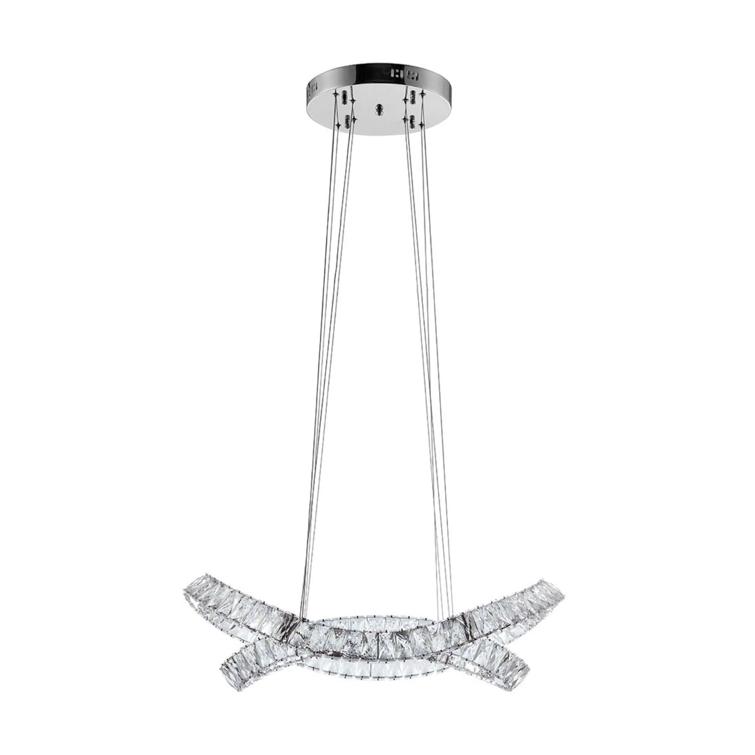 This Monroe Crystal Chandelier is a timeless piece that adds perfect dash of modern décor to any home. Finesse Decor's chandelier features two abstract shaped rings that can be adjusted to suit your height needs. It is perfect to put in an entry way or foyer, on top of a console, or in a dining room.