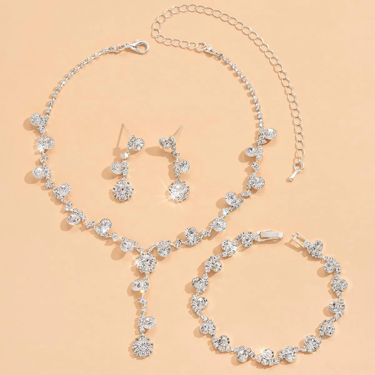 - Jewelry sets for women: This rhinestone jewelry set includes a necklace, pair of earrings, and bracelet or ring (optional), all encrusted with sparkling crystals for a dazzling look.