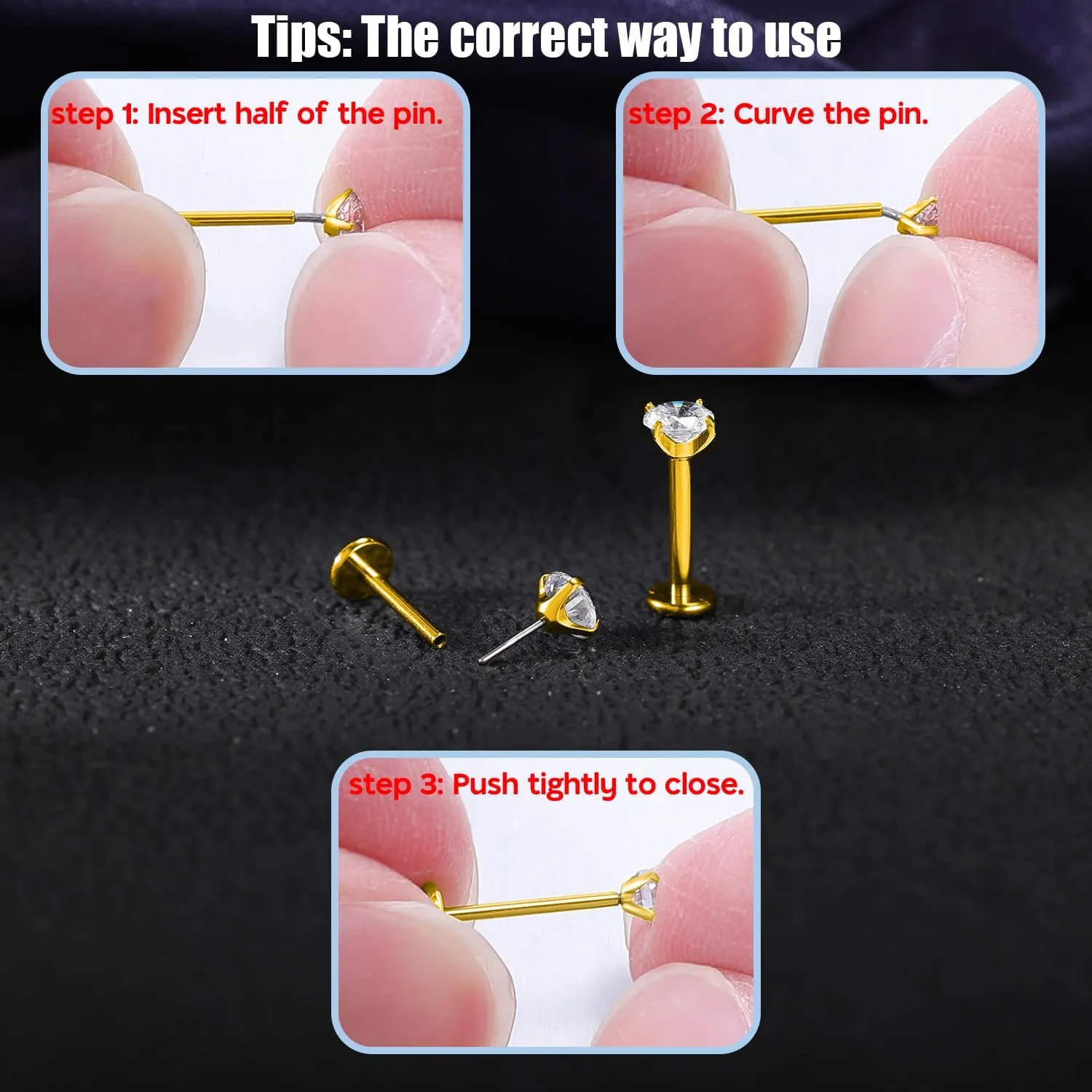 - [Item Contain]: 12Pcs tragus piercing jewelry, AAA shiny zirconia lip piercing jewelry. 1Pc insertion pin tool. affordable helix piercing jewelry for you.