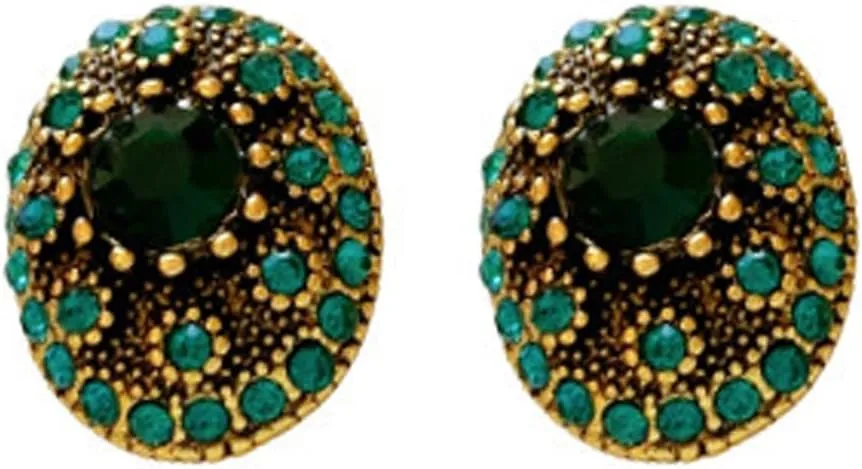 - Design: Elegant oval-shaped emerald rhinestone studs with a vintage-inspired baroque disc pattern for a sophisticated retro look