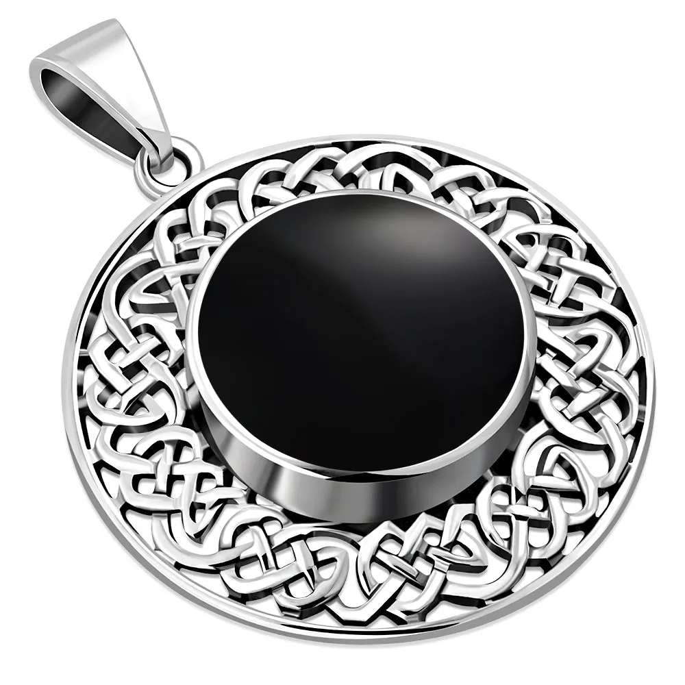 Round Celtic Black Onyx Silver Pendant