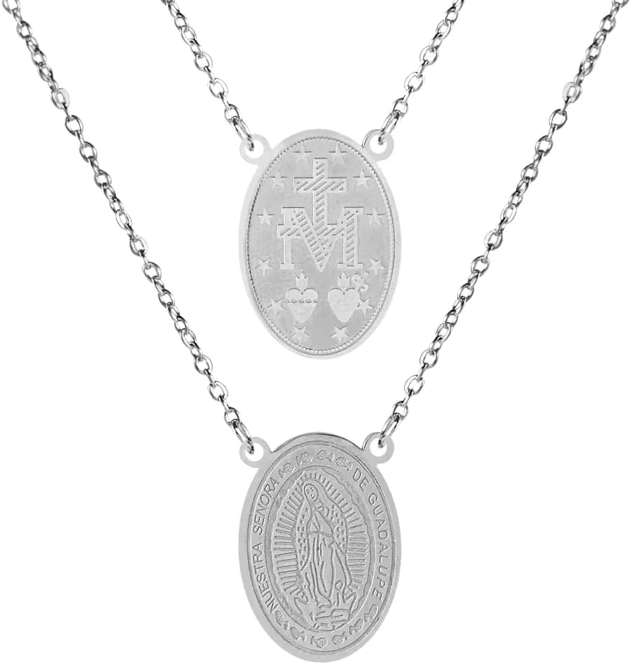 Scapulars Catholic Necklace, Our Lady of Mount Carmel Medals & I Sacred Heart of Jesus Stainless Steel Scapular Necklace for Women & Men, Escapularios Catolicos, Religious Gift