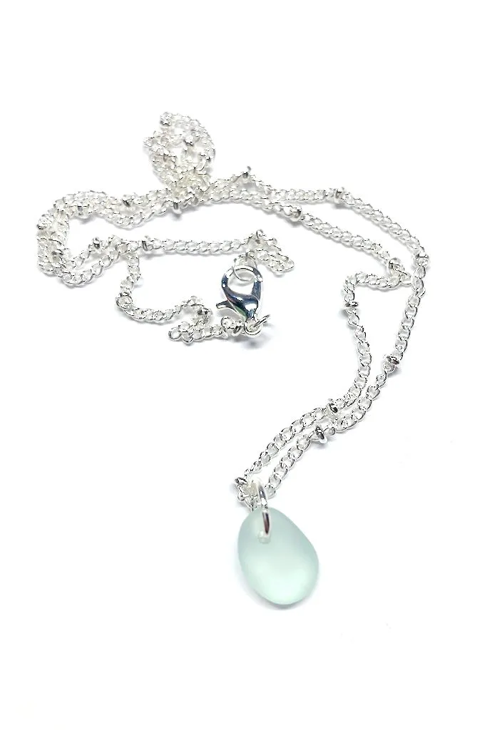 Load up on dazzlingly frosted beach glass beads strung on 18 inch chains with lobster clasps - available on silver-plated satellite or gold-plated cable chains, in light green, lemon yellow, and dusky yellow. There are multiples of each and your necklace will be chosen at random.