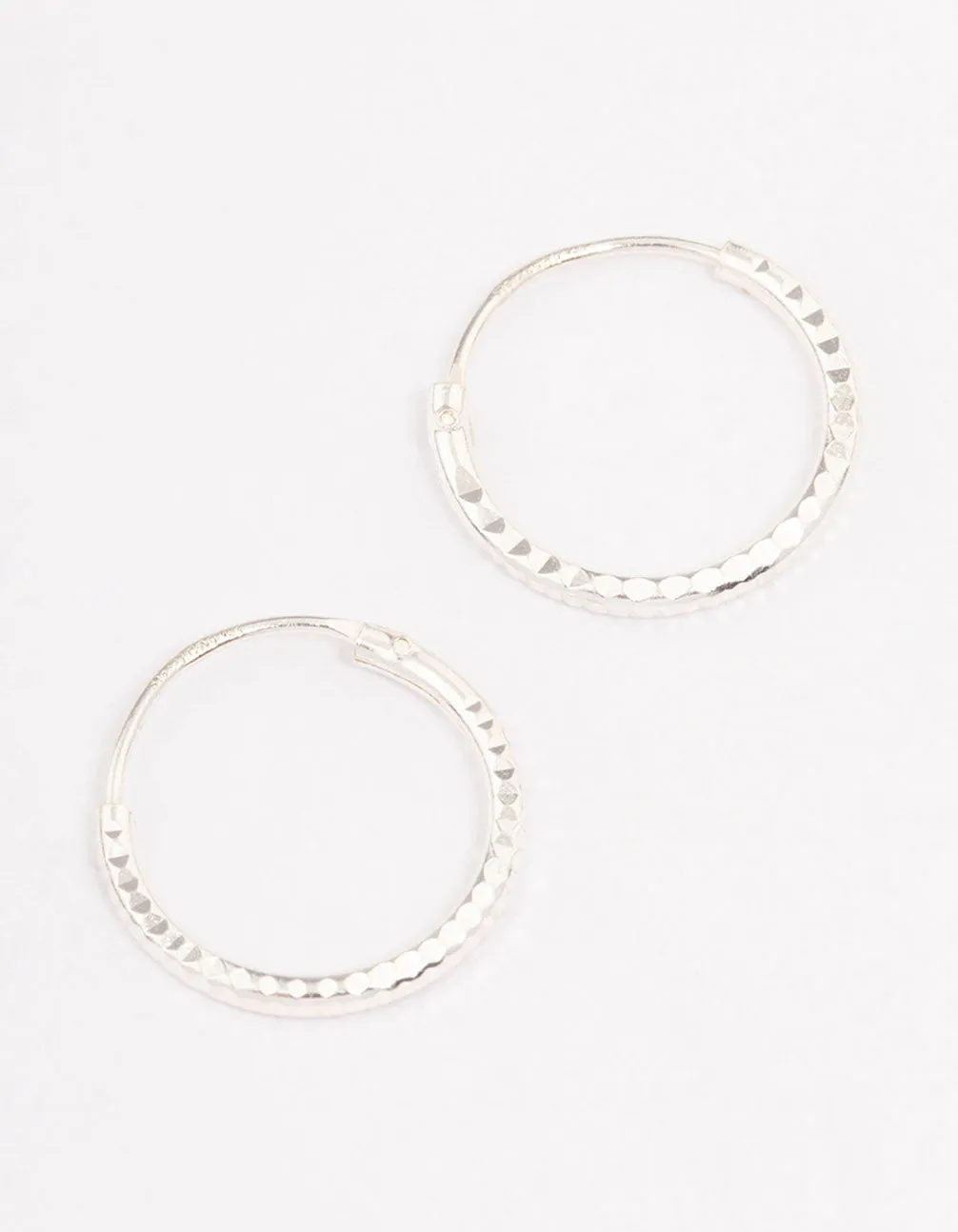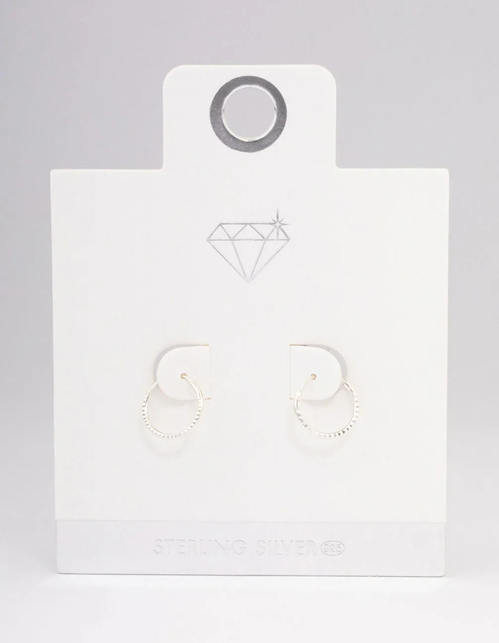 - This set of staple sterling silver hoop earrings features a dainty and fine profile with a subtle diamante accent, perfect for styling in your everyday stack.