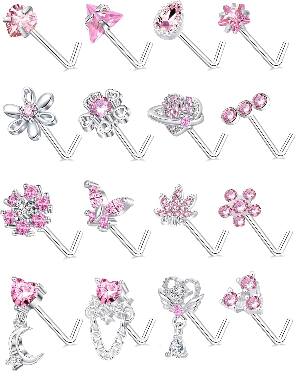 - NOSE RINGS STUD: One Order Contain 16Pcs Different Styles Nose Studs: Flower, Butterfly, Heart, Moon, Maple Leaf Nose stud, Dangle Nose Stud, Cute and Unique, Meeting you Daily Wear, Make you More Trendy and Charming