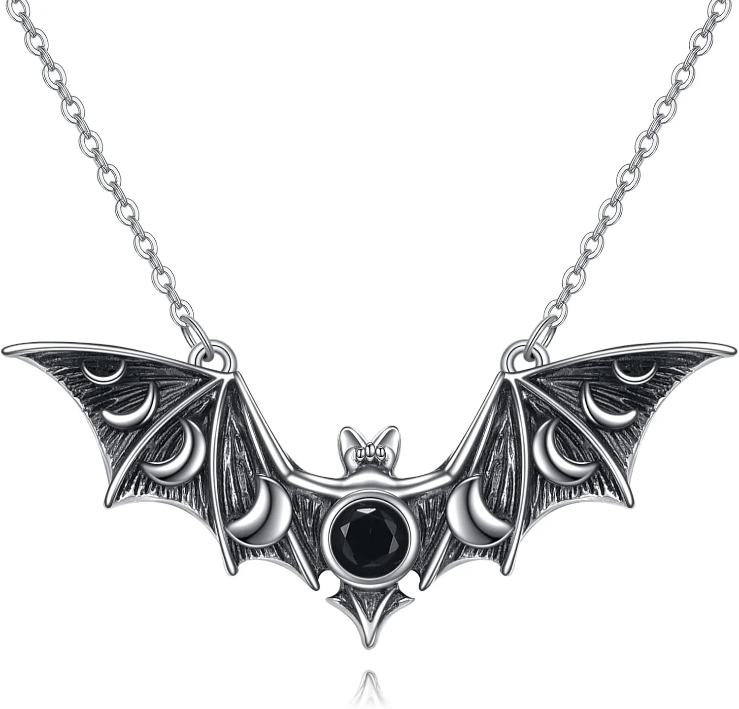 - Necklace DesignThe necklace design with bat, moon phase and cubic zircon, elegant, fashion and charming. Gothic black hanging bat necklace, with a strong sense of mystery and weirdness, and the horror atmosphere it creates is very suitable for Halloween.